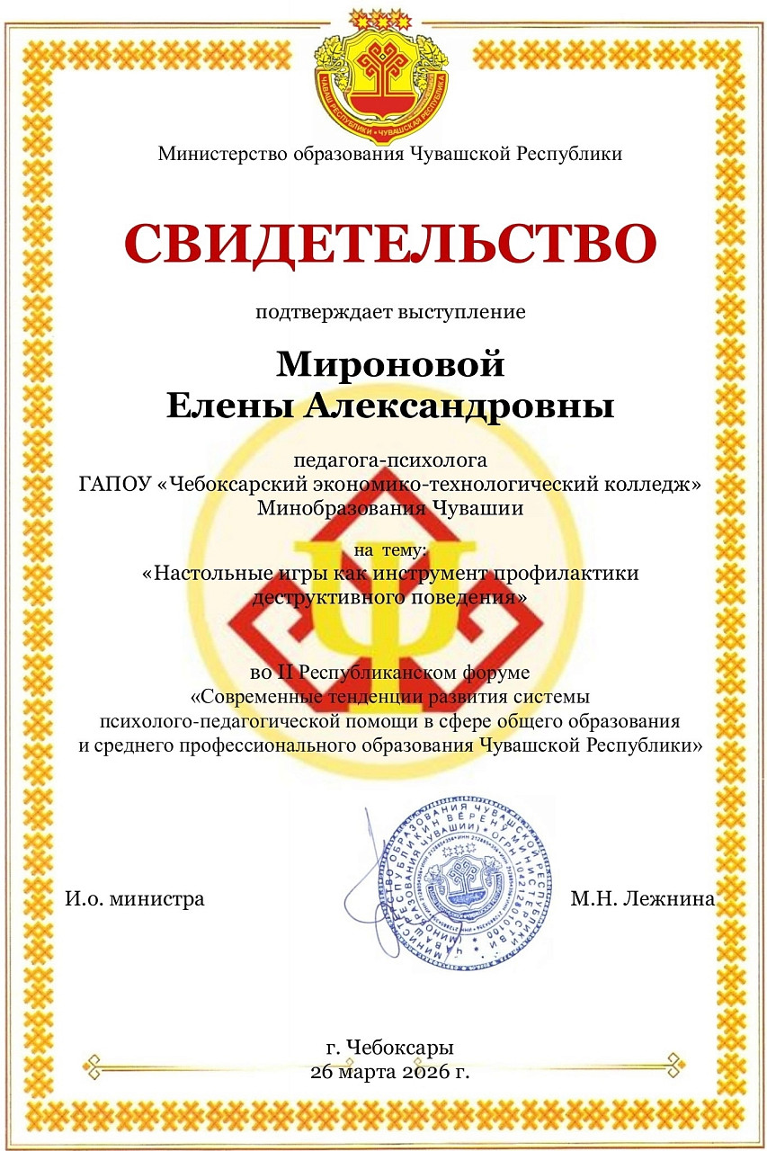 Форум «Современные тенденции развития системы психолого-педагогической помощи в сфере общего образования и среднего профессионального образования Чувашской Республики»