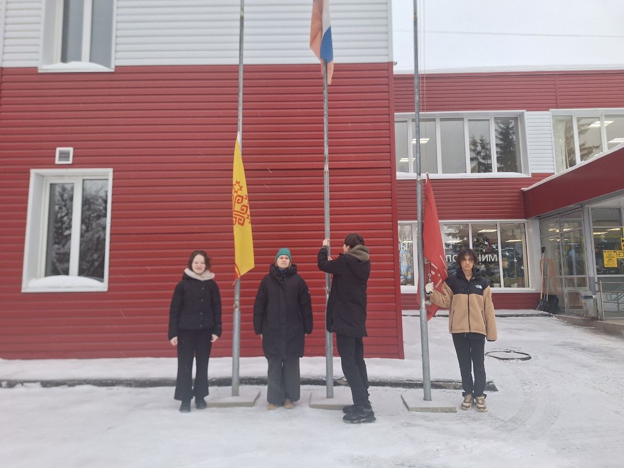 Новая учебная неделя в колледже традиционно началась с торжественного поднятия флага и исполнения гимна Российской Федерации.